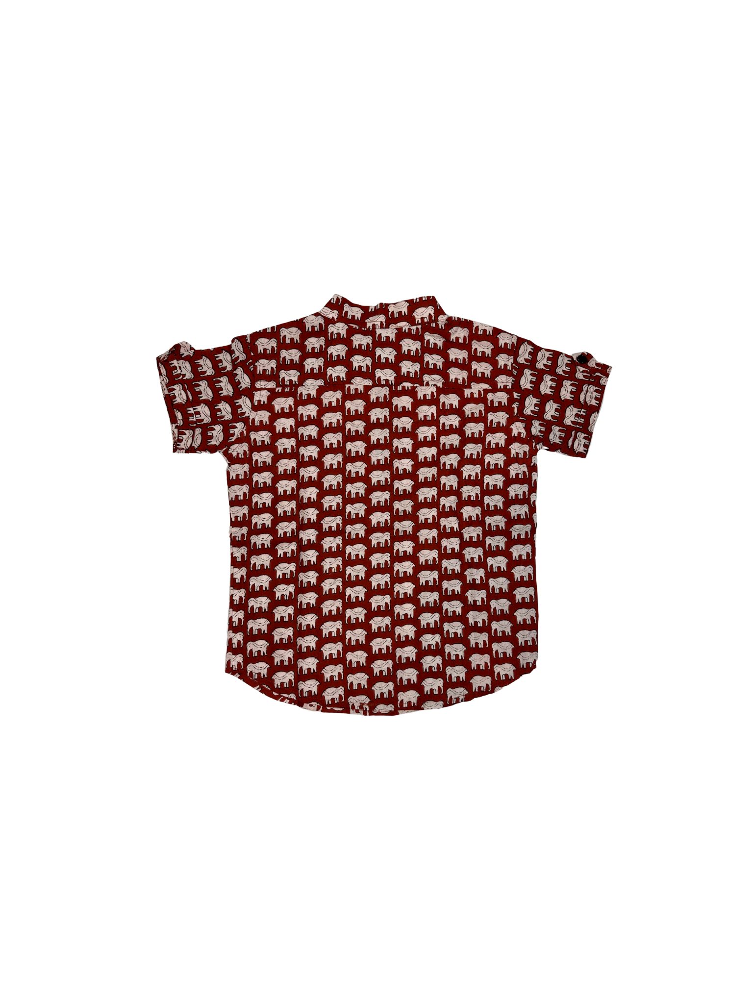 Add a touch of tradition and charm to your little one's wardrobe with this maroon short-sleeve, featuring a stylish all-over white elephant print. Perfect for casual outings, cultural events, and festive occasions, this shirt blends comfort with fashion effortlessly.